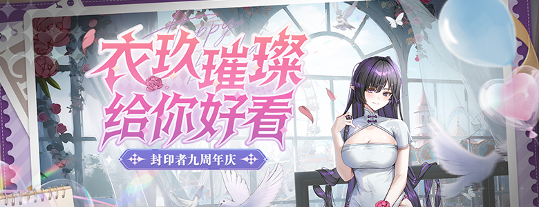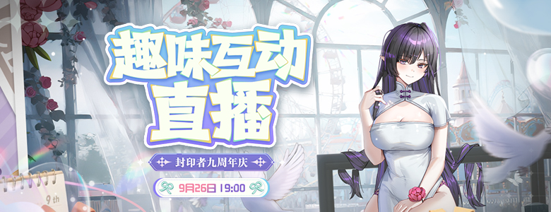 九周年庆典开幕!超多福利,拿到手软。九周年纪念立绘券、九周年纪念饰品、九周年专属饰品黄金物质转换器、九周年时装租赁、九周年纪念表情券免费领!更有立绘站重磅上线!国庆Bingo、爆竹活动同步开启!9月26日 19:00,请锁定B站封印者官方直播间(房间号:2774491)GM小哥和C酱将和大家一起共度9周年庆典直播!